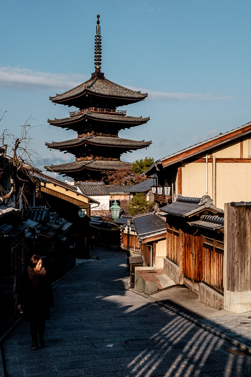 The one thing I learnt about Japan is that the rule “go there early to avoid the crowds” didn’t apply at all. The only place I was lucky enough to see without people was the famous Yasaka Pagoda area that I started exploring from around 7.30am as it was lit by a harsh, low winter light.