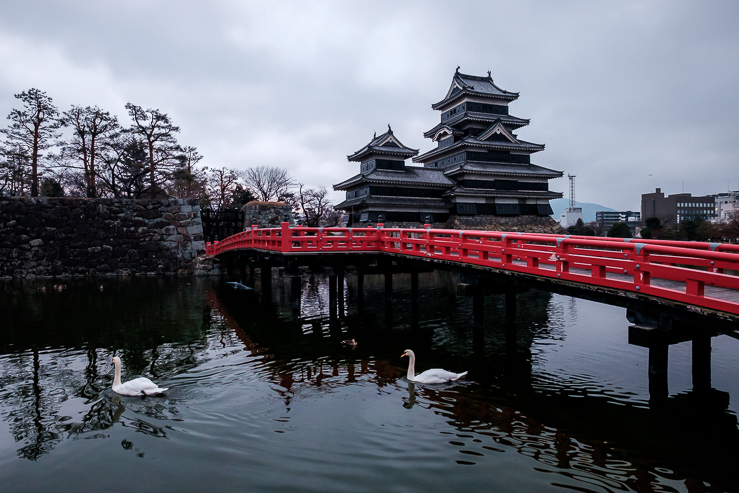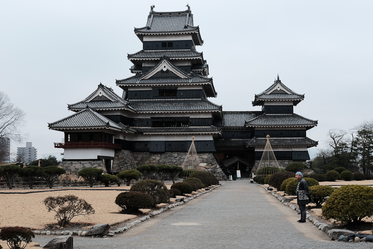 I had left the white Himeji castle behind, but the black Matsumoto castle was waiting for me. The caw of hundreds of crows around the castle blending with the fully black walls made it clear from the beginning why it is referred to as the “crow castle”. There was a Michael Yamashita’s photo that I’d seen years before that inspired me to go visit Matsumoto. Because of that I also decided to blatantly copy his photo. Call it a hommage if you want.