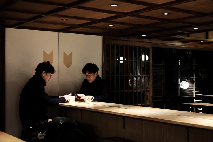 A quick ramen with tables for individual people